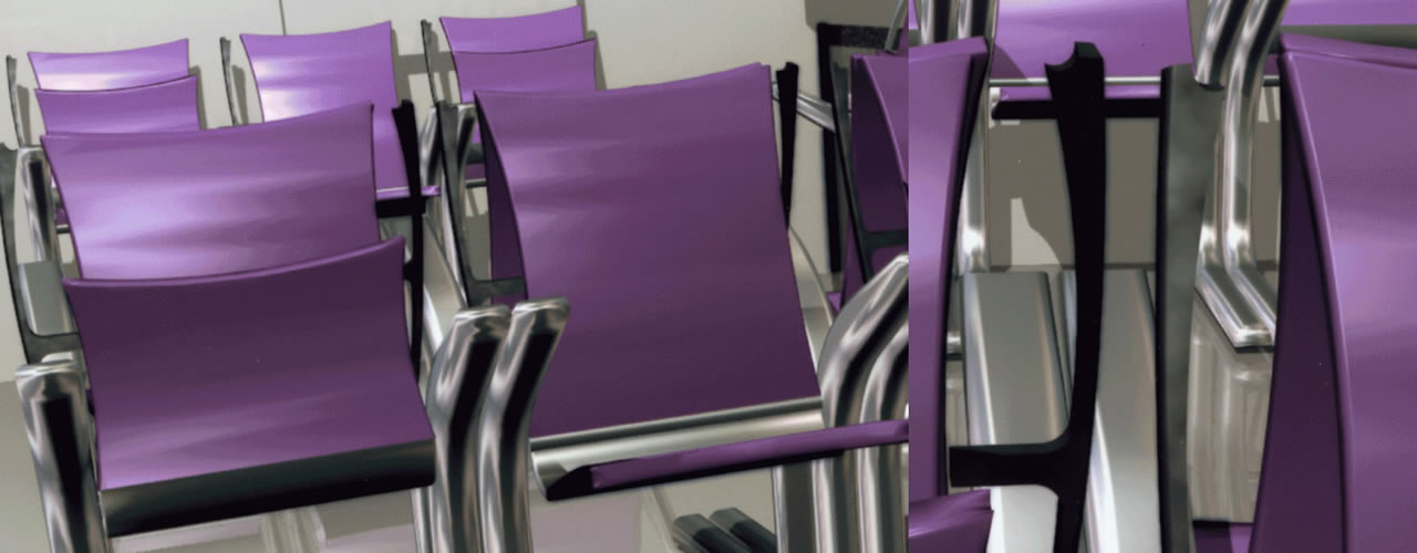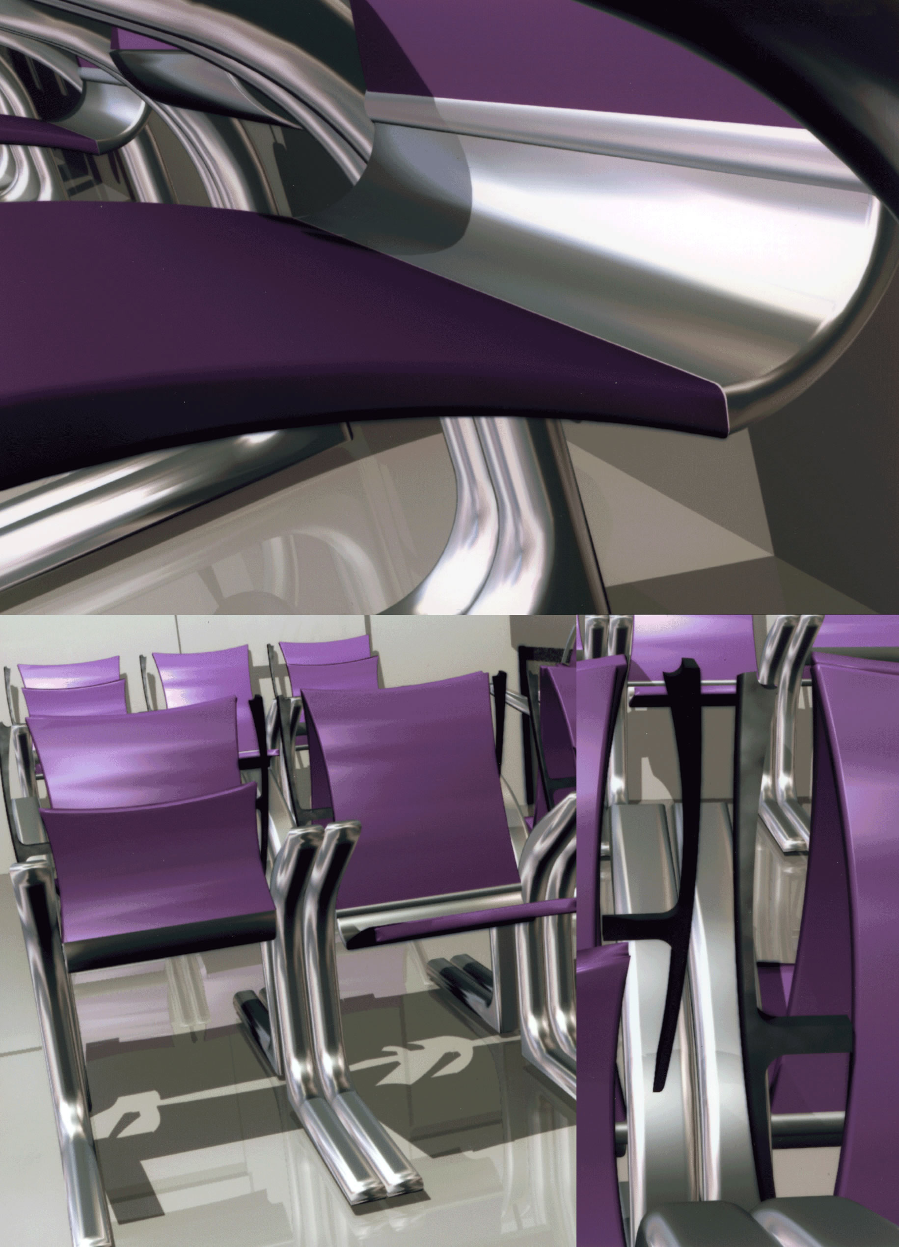 Commissioned to design a modular seating system, which retracts when not in use. High tension springs with a push to lock or release mechanism. A sleek aesthetic look, manufactured using brushed aluminum and carbon fiber. Intended to be installed in indoor public spaces, such as an airport lounge.