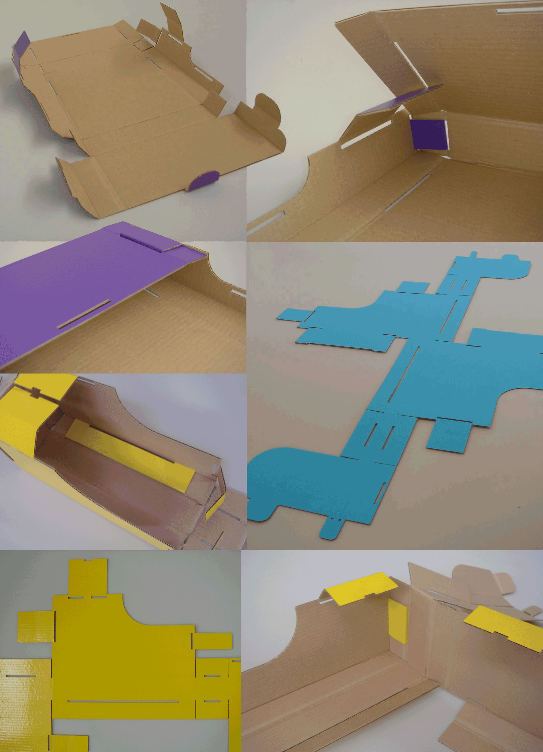 We were challenged to develop a sustainable packaging solution. The USP of the product is to be a modular system, which can form together to neatly transport weekly shopping items.